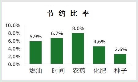 研究表明,駕駛員在一天作業(yè)中約有5%至10%的重疊傾向,將會(huì)使12米寬的農(nóng)具產(chǎn)生1.2米的行間重疊。通過使用自動(dòng)導(dǎo)航系統(tǒng),可減少90%的重疊作業(yè)。提高作業(yè)效率、大大地節(jié)省燃油、化肥、種子、肥料和時(shí)間(見方圖表),使用導(dǎo)航系統(tǒng)在田間每工作400小時(shí)即可節(jié)省大約3萬元人民幣。