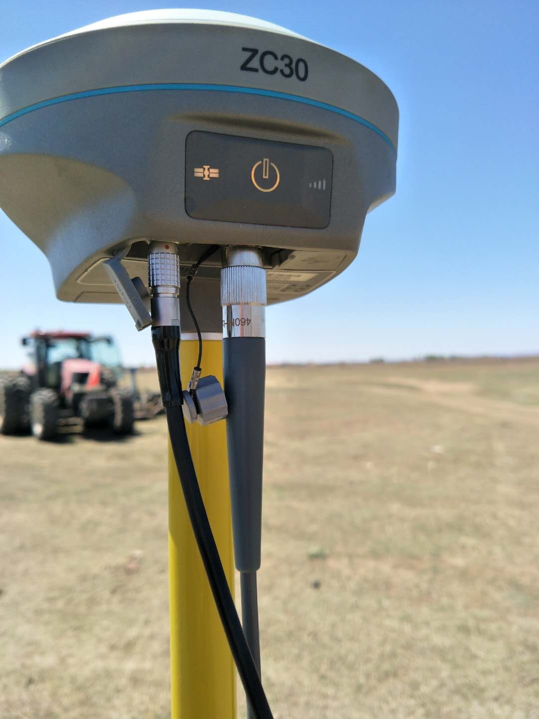 在項(xiàng)目區(qū)域范圍內(nèi),放置便攜式基準(zhǔn)站為北斗農(nóng)機(jī)提供高精度導(dǎo)航定位服務(wù)。