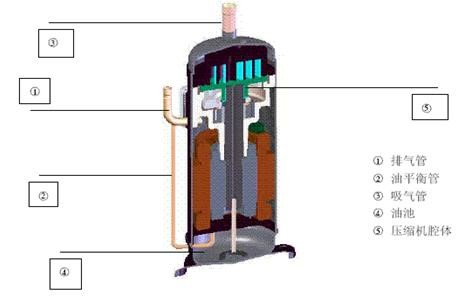 相比普通的渦旋壓縮機(jī),并聯(lián)壓縮機(jī)多了一根油平衡管。這根管只有當(dāng)壓縮機(jī)油池的油面超過(guò)了管口時(shí)才會(huì)發(fā)生作用。