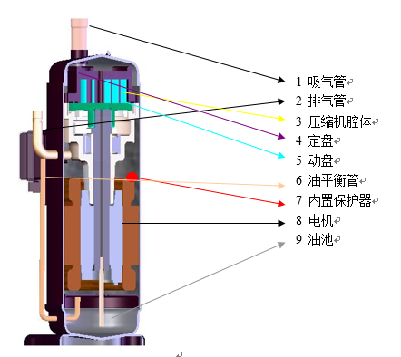 1. 內(nèi)部供油并聯(lián)渦旋壓縮機(jī)結(jié)構(gòu)圖示