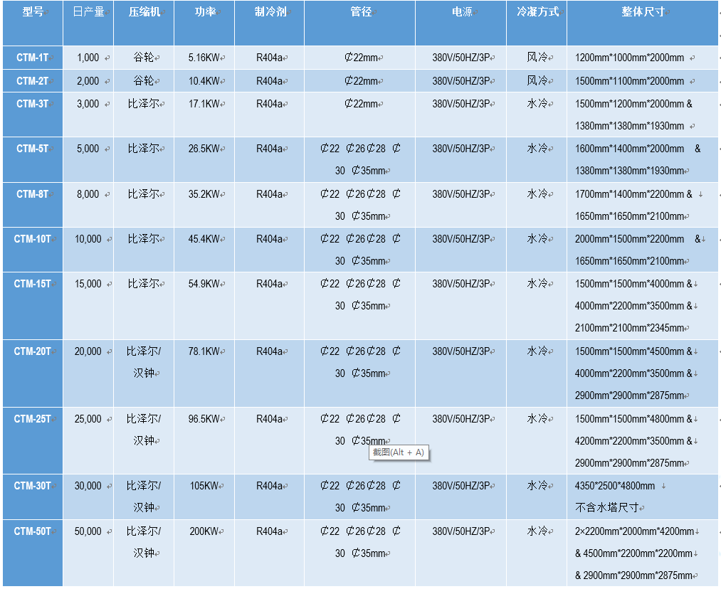 管冰機(jī)的型號(hào):日產(chǎn)量1噸-50噸