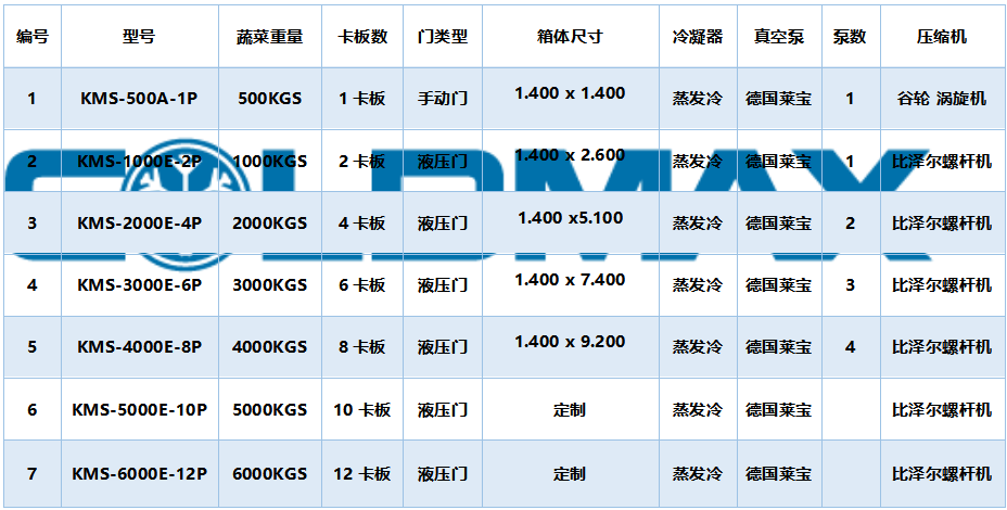 注:風(fēng)冷式真空預(yù)冷機(jī)設(shè)備一般采用比澤爾或者谷輪壓縮機(jī),冷凝器風(fēng)冷冷凝器;
