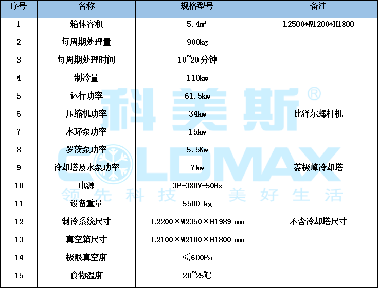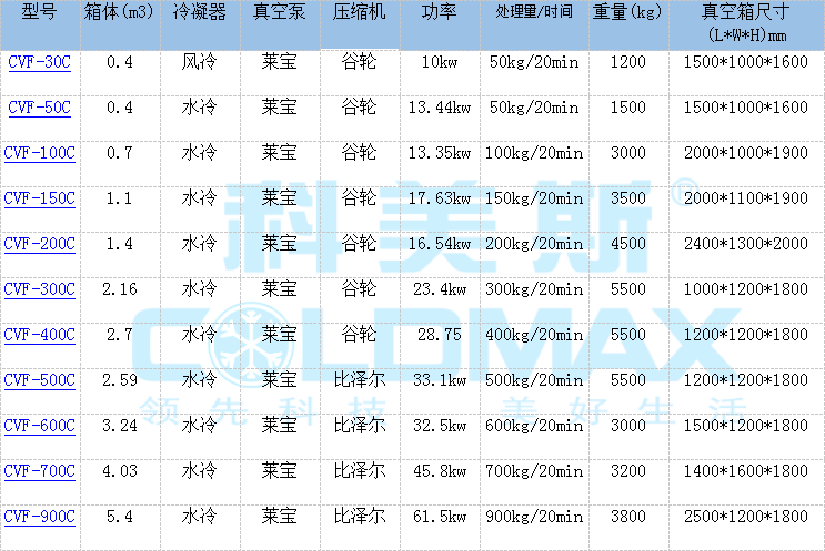 CVF-900 型號食品快速冷卻機每周期處理食品量為900kg,處理時間10~20分鐘;