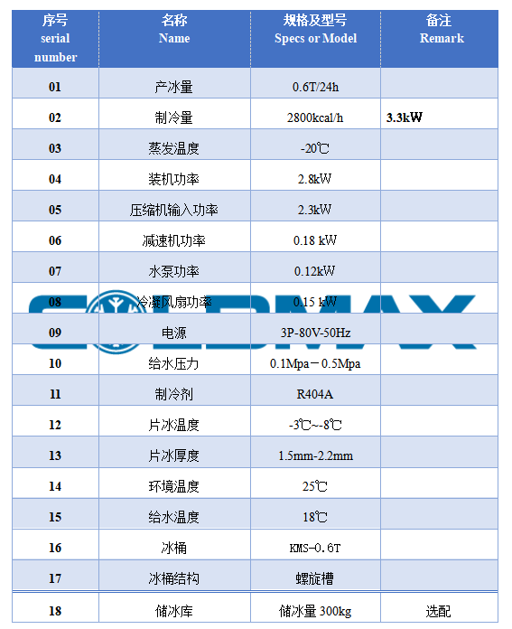 4. 高效節(jié)能: 優(yōu)化設(shè)計(jì)的片冰機(jī)組,保證COLDMAX內(nèi)刮式保鮮片冰機(jī)組連續(xù)性的運(yùn)行,減少能量浪費(fèi)的運(yùn)轉(zhuǎn)。采用特殊合金材料和專(zhuān)利加工技術(shù),確保高效熱傳導(dǎo)性能,COLDMAX片冰制冰機(jī)生產(chǎn)的片冰的冷卻表面為1750m2以上/噸。