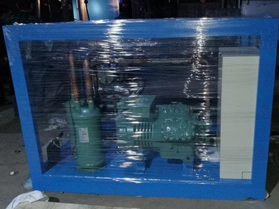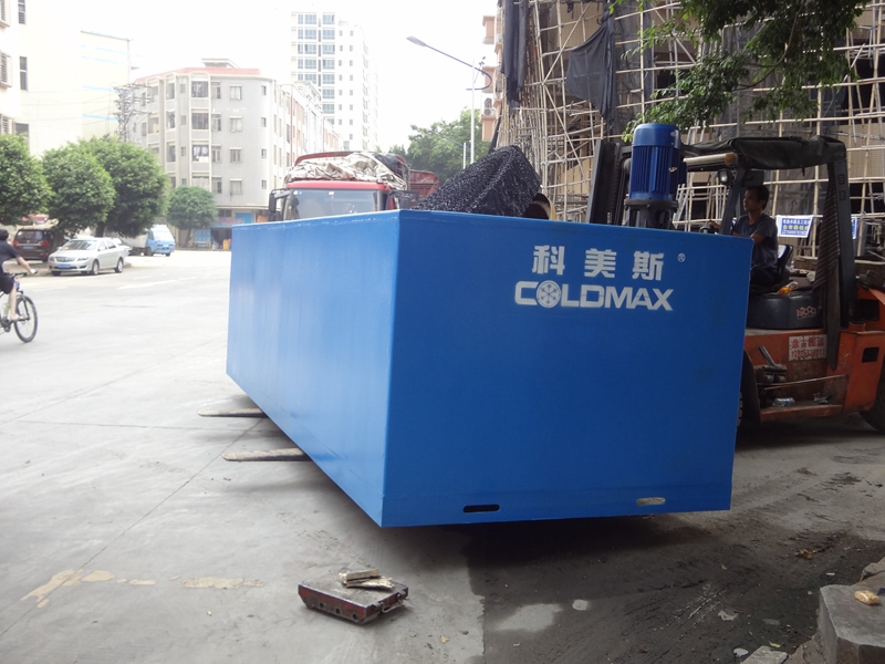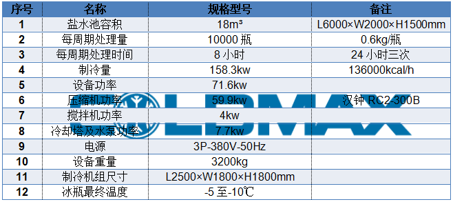 冰瓶機(jī)通常使用鹽水間接式制冷。將裝有水的塑料瓶放入鹽水池中,蓋上鹽水池蓋板,設(shè)備啟動后,制冷機(jī)組開始運(yùn)行;塑料瓶中的水先于鹽水池中的鹽水凝結(jié)成冰,從而實現(xiàn)冰瓶的制作。