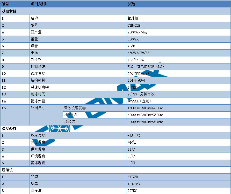 CTM-25E 日產(chǎn)25噸管冰機(jī)參數(shù):