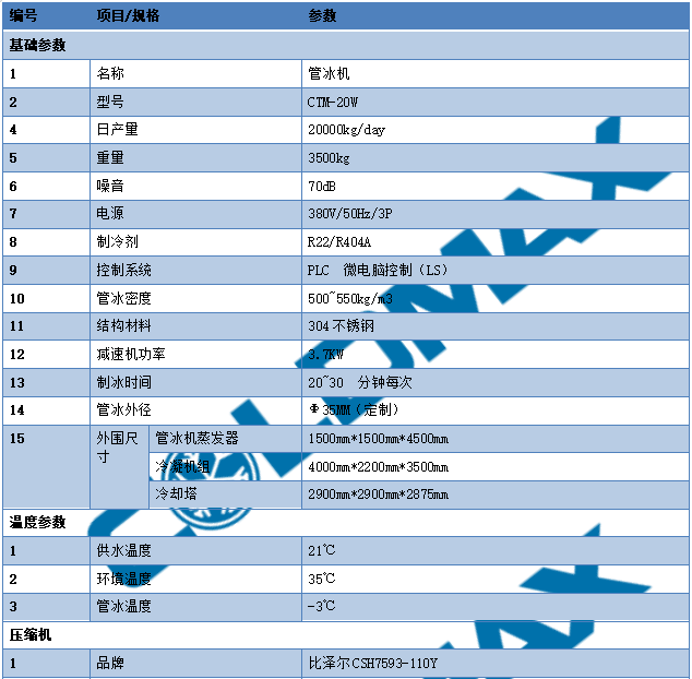 CTM-20W 日產(chǎn)20噸管冰機參數(shù):