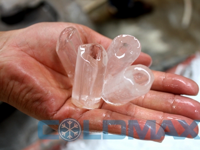 ●管冰呈中空圓柱形狀,外直徑尺寸為φ26mm、φ28mm、φ30mm、φ34mm等多種規(guī)格,長度27~50mm不等。內(nèi)孔直徑可根據(jù)制冰時(shí)間調(diào)整,一般控制在φ5~10mm之間。