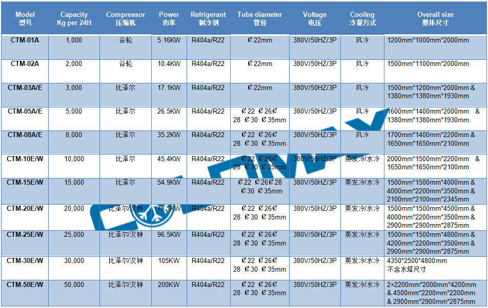 制冷系統(tǒng): A.氟系統(tǒng)(R404a、R22);B.氨系統(tǒng)(R717)