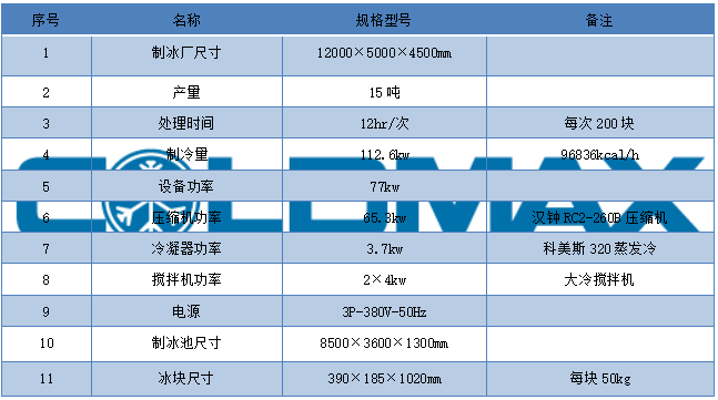 CBM-15 日產(chǎn)15噸塊冰技術(shù)參數(shù):