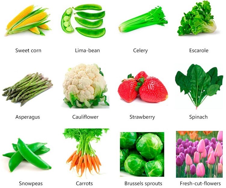 新鮮蔬菜(尤其是葉菜)、水果、鮮切花,鮮肉品,熟食品。