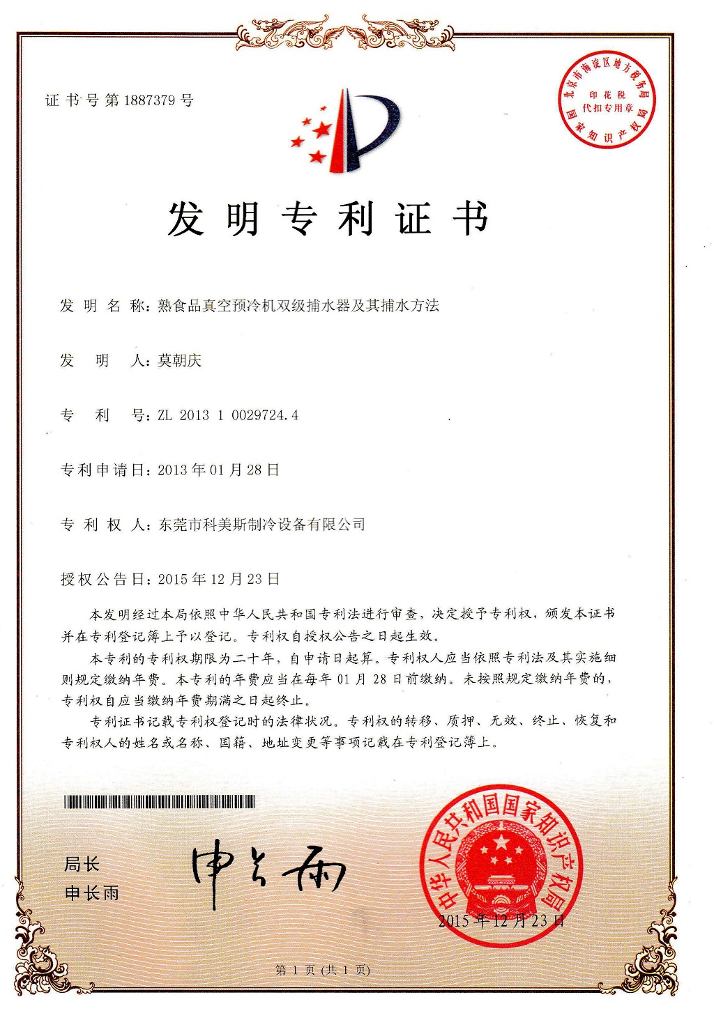 1. 科美斯于2002年開始從事農(nóng)業(yè)制冷保鮮行業(yè),2008年注冊(cè)并成功自主研發(fā)生產(chǎn)真空預(yù)冷機(jī),成為國內(nèi)首批真空預(yù)冷機(jī)生產(chǎn)廠家且擁有自主品牌科美斯。