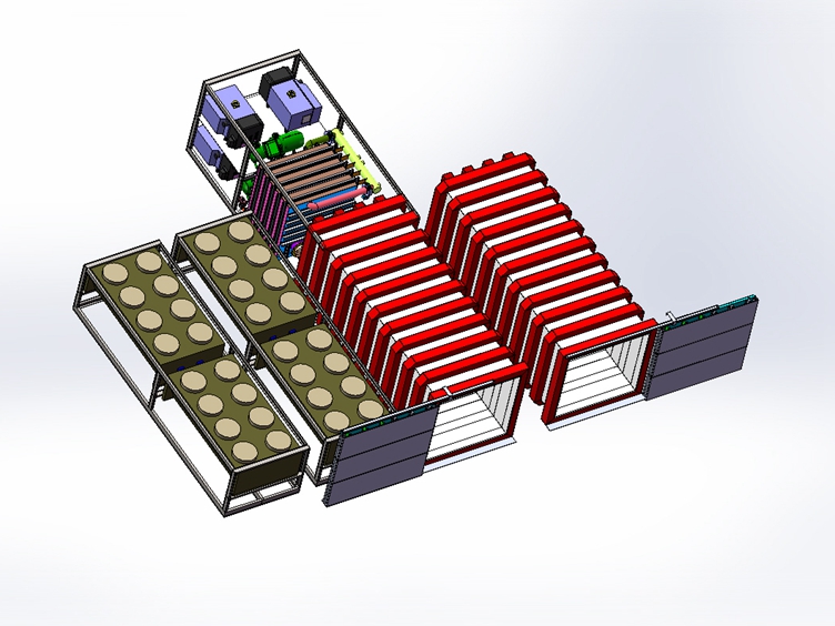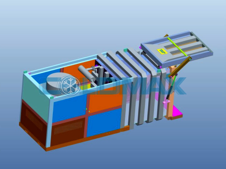 主要考慮將設(shè)備預(yù)冷的時間充分利用,提高設(shè)備系統(tǒng)的使用率;考慮在一個箱體進(jìn)行預(yù)冷時一個箱體進(jìn)出貨,交叉運(yùn)行提高效率;此方案主要針對中小型設(shè)備的使用;